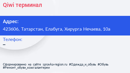 Qiwi, терминал по адресу 423606, Татарстан, Елабуга, Хирурга Нечаева, 10а в дальнейшем Организация, размещена в следующих категориях: