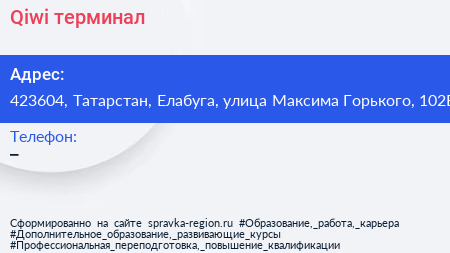 Qiwi, терминал по адресу 423604, Татарстан, Елабуга, улица Максима Горького, 102Б в дальнейшем Организация, размещена в следующих категориях: