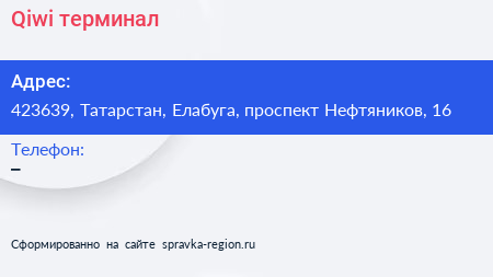 Qiwi, терминал по адресу 423639, Татарстан, Елабуга, проспект Нефтяников, 16 в дальнейшем Организация, размещена в следующих категориях: