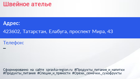 Швейное ателье по адресу 423602, Татарстан, Елабуга, проспект Мира, 43 в дальнейшем Организация, размещена в следующих категориях: