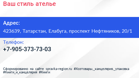 Ваш стиль, ателье по адресу 423639, Татарстан, Елабуга, проспект Нефтяников, 20/1 в дальнейшем Организация, размещена в следующих категориях:
