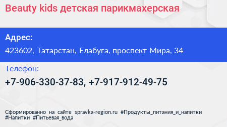 Beauty kids, детская парикмахерская по адресу 423602, Татарстан, Елабуга, проспект Мира, 34 в дальнейшем Организация, размещена в следующих категориях: