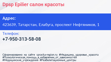 Dpsp Epilier, салон красоты по адресу 423639, Татарстан, Елабуга, проспект Нефтяников, 1 в дальнейшем Организация, размещена в следующих категориях: