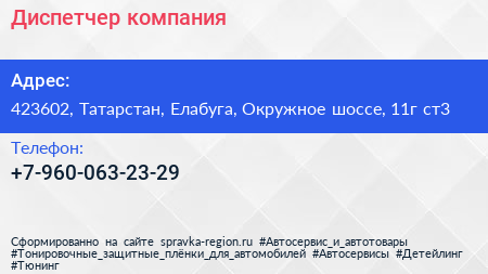 Диспетчер, компания по адресу 423602, Татарстан, Елабуга, Окружное шоссе, 11г ст3 в дальнейшем Организация, размещена в следующих категориях: