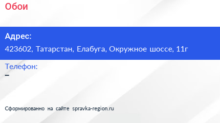 Обои+ по адресу 423602, Татарстан, Елабуга, Окружное шоссе, 11г в дальнейшем Организация, размещена в следующих категориях: