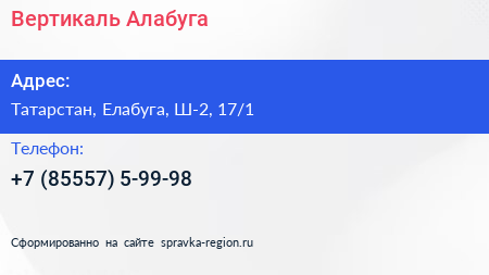 Вертикаль-Алабуга по адресу Татарстан, Елабуга, Ш-2, 17/1 в дальнейшем Организация, размещена в следующих категориях: