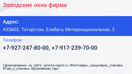Заводские окна, фирма по адресу 423602, Татарстан, Елабуга, Интернациональная, 3 в дальнейшем Организация, размещена в следующих категориях: