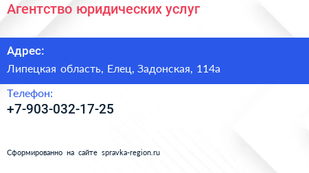 Агентство юридических услуг по адресу Липецкая область, Елец, Задонская, 114а в дальнейшем Организация, размещена в следующих категориях: