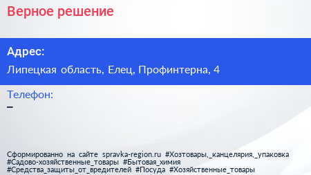 Верное решение по адресу Липецкая область, Елец, Профинтерна, 4 в дальнейшем Организация, размещена в следующих категориях: