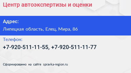 Центр автоэкспертизы и оценки по адресу Липецкая область, Елец, Мира, 86 в дальнейшем Организация, размещена в следующих категориях: