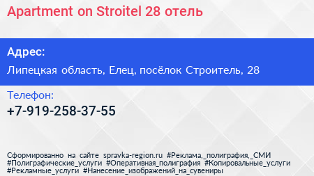 Apartment on Stroitel 28, отель по адресу Липецкая область, Елец, посёлок Строитель, 28 в дальнейшем Организация, размещена в следующих категориях: