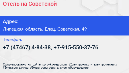 Отель на Советской по адресу Липецкая область, Елец, Советская, 49 в дальнейшем Организация, размещена в следующих категориях: