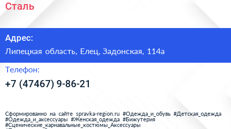 Сталь по адресу Липецкая область, Елец, Задонская, 114а в дальнейшем Организация, размещена в следующих категориях: