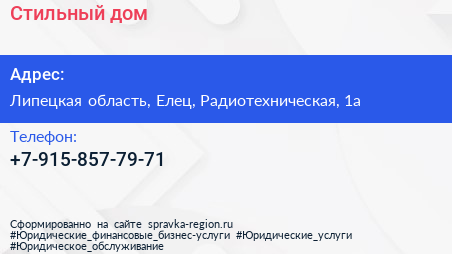 Стильный дом по адресу Липецкая область, Елец, Радиотехническая, 1а в дальнейшем Организация, размещена в следующих категориях: