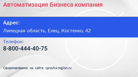 Автоматизация Бизнеса, компания по адресу Липецкая область, Елец, Костенко, 42 в дальнейшем Организация, размещена в следующих категориях: