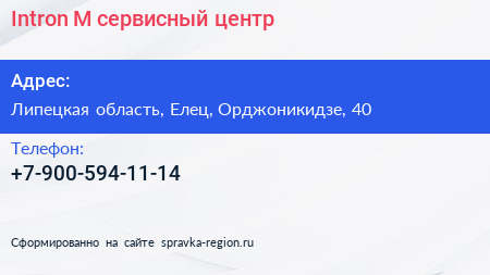 Intron-M, сервисный центр по адресу Липецкая область, Елец, Орджоникидзе, 40 в дальнейшем Организация, размещена в следующих категориях: