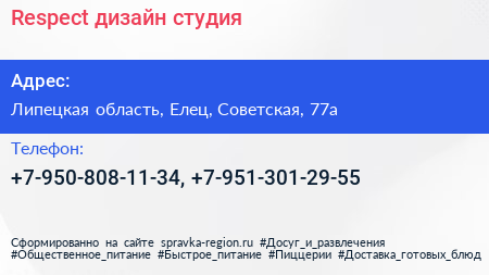 Respect, дизайн-студия по адресу Липецкая область, Елец, Советская, 77а в дальнейшем Организация, размещена в следующих категориях: