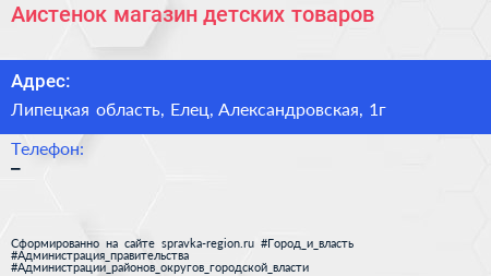 Аистенок, магазин детских товаров по адресу Липецкая область, Елец, Александровская, 1г в дальнейшем Организация, размещена в следующих категориях: