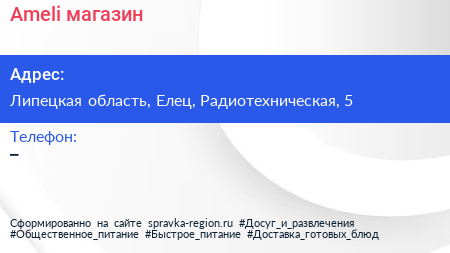 Ameli, магазин по адресу Липецкая область, Елец, Радиотехническая, 5 в дальнейшем Организация, размещена в следующих категориях: