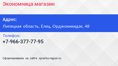 Экономница, магазин по адресу Липецкая область, Елец, Орджоникидзе, 48 в дальнейшем Организация, размещена в следующих категориях: