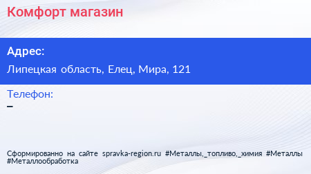 Комфорт, магазин по адресу Липецкая область, Елец, Мира, 121 в дальнейшем Организация, размещена в следующих категориях: