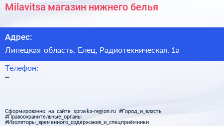 Milavitsa, магазин нижнего белья по адресу Липецкая область, Елец, Радиотехническая, 1а в дальнейшем Организация, размещена в следующих категориях: