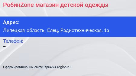 РобинZone, магазин детской одежды по адресу Липецкая область, Елец, Радиотехническая, 1а в дальнейшем Организация, размещена в следующих категориях: