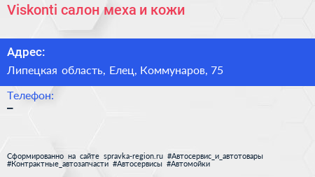 Viskonti, салон меха и кожи по адресу Липецкая область, Елец, Коммунаров, 75 в дальнейшем Организация, размещена в следующих категориях: