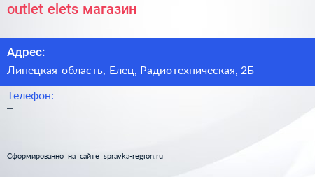 outlet elets, магазин по адресу Липецкая область, Елец, Радиотехническая, 2Б в дальнейшем Организация, размещена в следующих категориях: