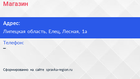 Магазин по адресу Липецкая область, Елец, Лесная, 1а в дальнейшем Организация, размещена в следующих категориях: