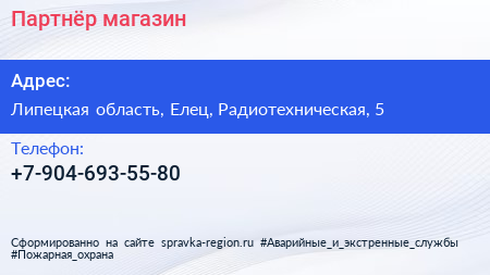 Партнёр, магазин по адресу Липецкая область, Елец, Радиотехническая, 5 в дальнейшем Организация, размещена в следующих категориях: