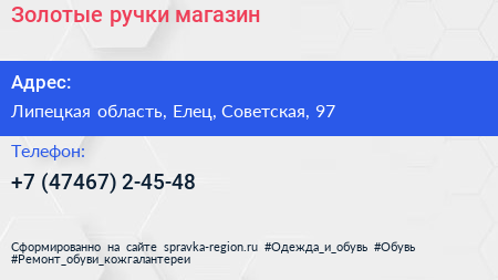 Золотые ручки, магазин по адресу Липецкая область, Елец, Советская, 97 в дальнейшем Организация, размещена в следующих категориях: