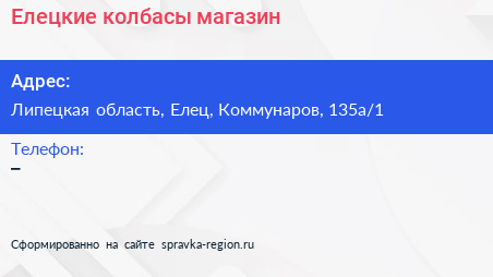 Елецкие колбасы, магазин по адресу Липецкая область, Елец, Коммунаров, 135а/1 в дальнейшем Организация, размещена в следующих категориях: