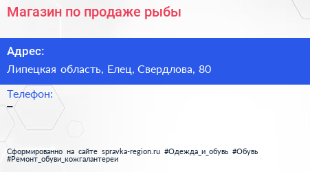Магазин по продаже рыбы по адресу Липецкая область, Елец, Свердлова, 80 в дальнейшем Организация, размещена в следующих категориях: