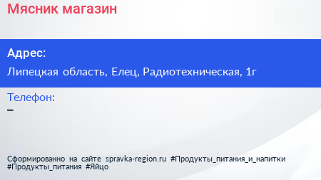 Мясник, магазин по адресу Липецкая область, Елец, Радиотехническая, 1г в дальнейшем Организация, размещена в следующих категориях: