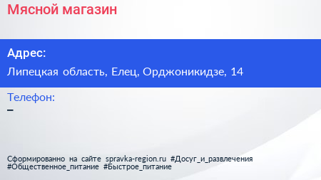 Мясной магазин по адресу Липецкая область, Елец, Орджоникидзе, 14 в дальнейшем Организация, размещена в следующих категориях: