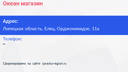 Океан, магазин по адресу Липецкая область, Елец, Орджоникидзе, 11а в дальнейшем Организация, размещена в следующих категориях: