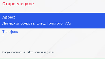 Староелецкое по адресу Липецкая область, Елец, Толстого, 79а в дальнейшем Организация, размещена в следующих категориях: