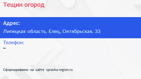 Тещин огород по адресу Липецкая область, Елец, Октябрьская, 33 в дальнейшем Организация, размещена в следующих категориях: