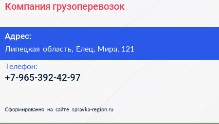 Компания грузоперевозок по адресу Липецкая область, Елец, Мира, 121 в дальнейшем Организация, размещена в следующих категориях: