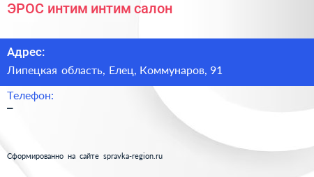 ЭРОС интим, интим-салон по адресу Липецкая область, Елец, Коммунаров, 91 в дальнейшем Организация, размещена в следующих категориях:
