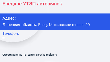Елецкое УТЭП, авторынок по адресу Липецкая область, Елец, Московское шоссе, 20 в дальнейшем Организация, размещена в следующих категориях: