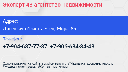 Эксперт-48, агентство недвижимости по адресу Липецкая область, Елец, Мира, 86 в дальнейшем Организация, размещена в следующих категориях: