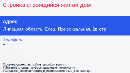 Стройка, строящийся жилой дом по адресу Липецкая область, Елец, Привокзальная, 2в стр в дальнейшем Организация, размещена в следующих категориях: