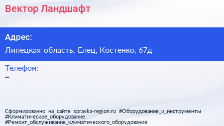 Вектор-Ландшафт по адресу Липецкая область, Елец, Костенко, 67д в дальнейшем Организация, размещена в следующих категориях: