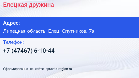 Елецкая дружина по адресу Липецкая область, Елец, Спутников, 7а в дальнейшем Организация, размещена в следующих категориях: