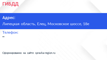 ГИБДД по адресу Липецкая область, Елец, Московское шоссе, 18е в дальнейшем Организация, размещена в следующих категориях: