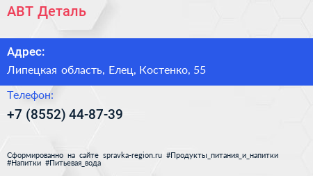 АВТ Деталь по адресу Липецкая область, Елец, Костенко, 55 в дальнейшем Организация, размещена в следующих категориях: