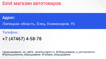 Exist, магазин автотоваров по адресу Липецкая область, Елец, Коммунаров, 91 в дальнейшем Организация, размещена в следующих категориях: