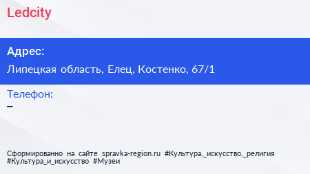 Ledcity по адресу Липецкая область, Елец, Костенко, 67/1 в дальнейшем Организация, размещена в следующих категориях: